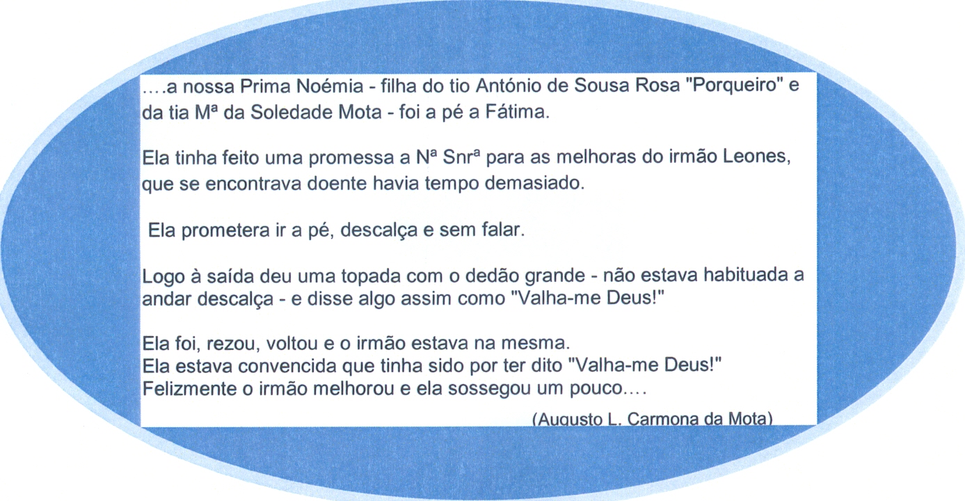 Também havia cunhadas e irmãs, uma das cunhadas que se julgava mais civilizada no meio, não perdoava nada às cunhadas Mota. Quando da separação do marido, cortou relações com as que ficaram do lado deste. Esta Gracinda Teixeira era irmã do meu pai. Não era nada meiga para as sobrinhas!